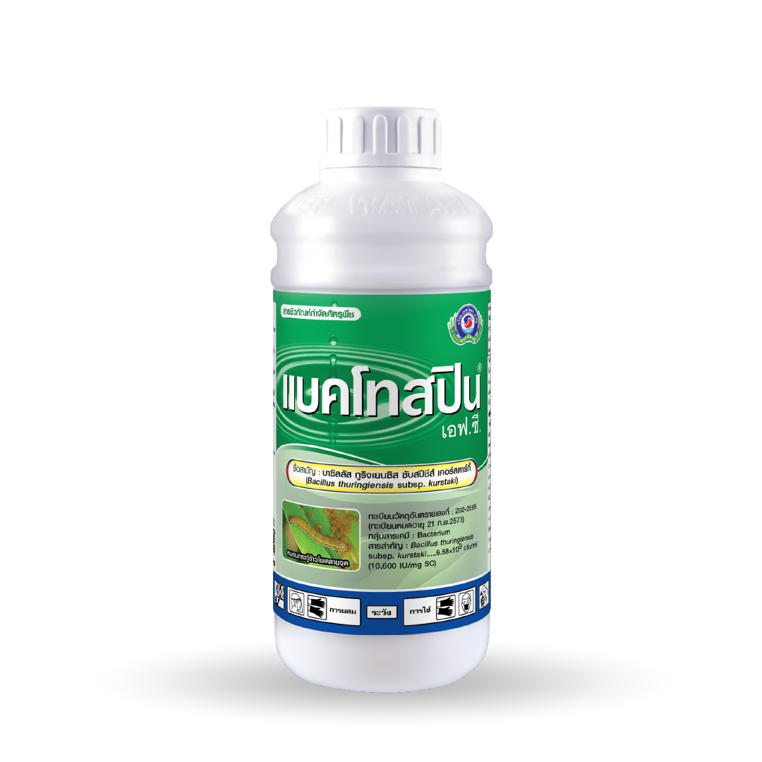สารชีวภัณฑ์ป้องกันกำจัดแมลง ที่ไม่เป็นอัตรายต่อผู้ใช้ และสิ่งแวดล้อม ประกอบด้วยเชื้อแบคทีเรียที่มีชีวิต บาซิลลัส ทูริงเยนซิส ซับสปีชีส์ เคอร์สตากร์กี้ แบคโทสปิน สารชีวภัณฑ์กำจัดแมลง แบบกินตาย ใช้ป้องกันกำจัด หนอนผีเสื้อต่างๆ เช่น หนอนแปะใบ หนอนม้วนใบ หนอนเจาะดอก หนอนเจาะผล หนอนหัวดำ แบคโทสปิน ปลอดภัย ไร้พิษตกค้าง สามารถใช้ในพืชออร์แกนิคได้