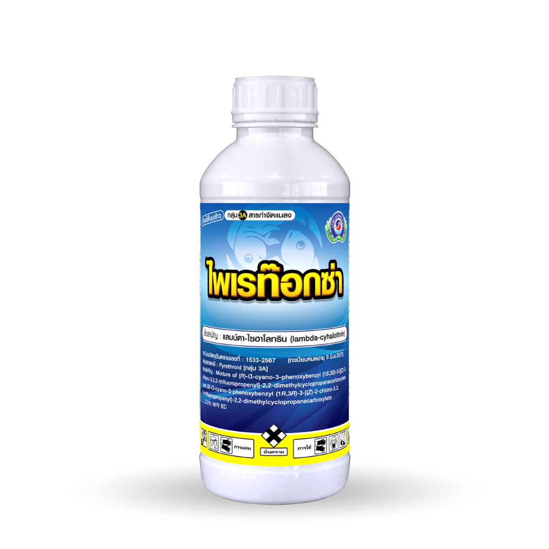 สารป้องกันกำจัดแมลง สารแลมป์ดา-ไซฮาโลทริน ยาป้องกันกำจัดแมลง ชนิดสัมผัส แบบถูกตัวตาย และกินตาย ไพเรท๊อกซ่า ใช้ป้องกันกำจัด หนอน มวน เพลี้ย บั่ว แมลงปีกแข็งต่างๆ ออกฤทธิ์เร็ว ถูกตัวตายทันที เป็นยาเย็น ปลอดภัย สามารถใช้ได้ทุกช่วงการเจริญเติบโตของพืช